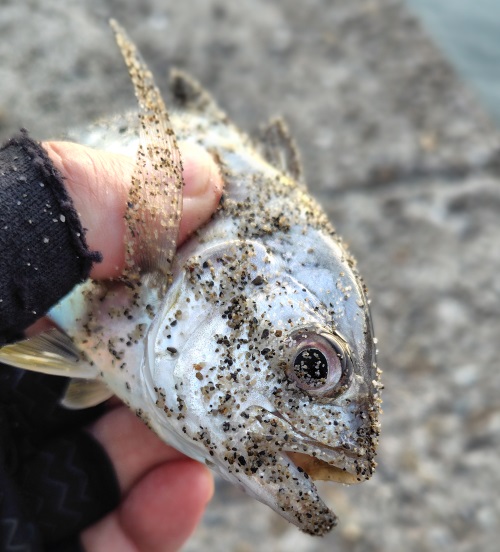 近辺のエリアをウロウロして濁りの無さそうなところを巡回、小河川河口でとりあえずスタート。